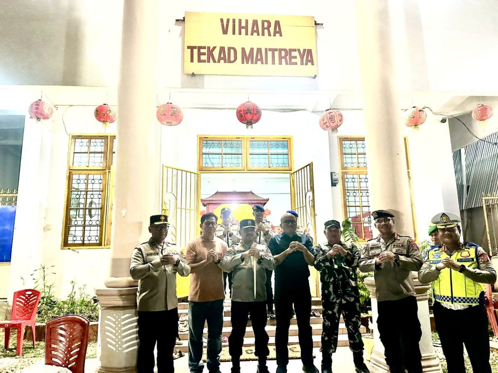 Rombongan meninjau langsung sejumlah vihara di Kota Kendari sekaligus berdialog dengan pengurus tempat ibadah untuk memastikan rangkaian ibadah malam Imlek berlangsung aman, tertib, dan kondusif.